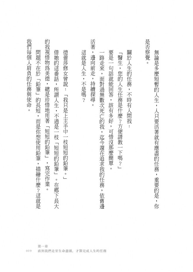 第一章 直到我們走至生命盡頭,才算完成人生的任務