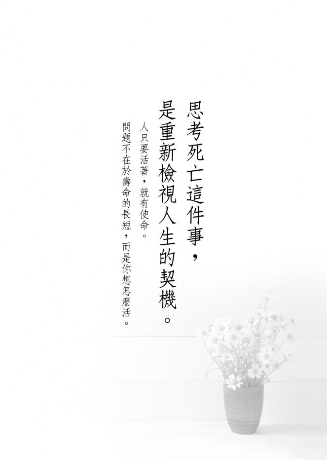當你一心想著「生命比什麼都重要」,死亡便成了消極的代名詞(宿命的敵人),成天畏懼死亡到來。