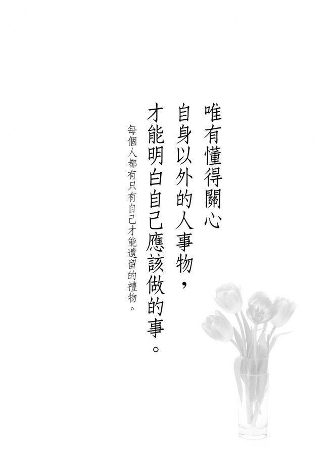 人生的任務與使命必須靠自己尋覓,所以我能做的就是贈送一句提點的話語。