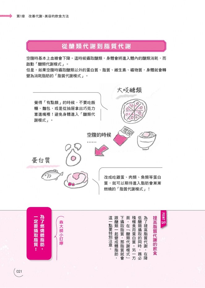 ‧具體地解說飲食實例,例如「每天要攝取兩個手掌大小的蛋白質」,清楚易懂。