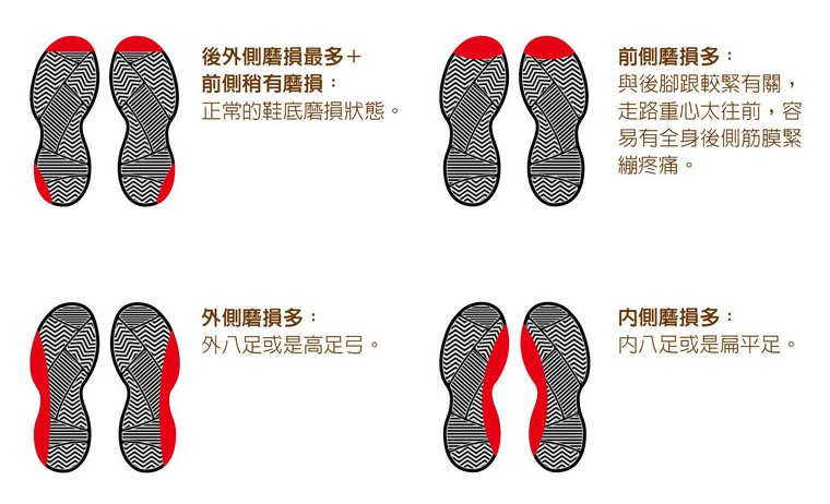 找一雙穿了半年的鞋子,觀察鞋底,來了解自己的走路姿勢。