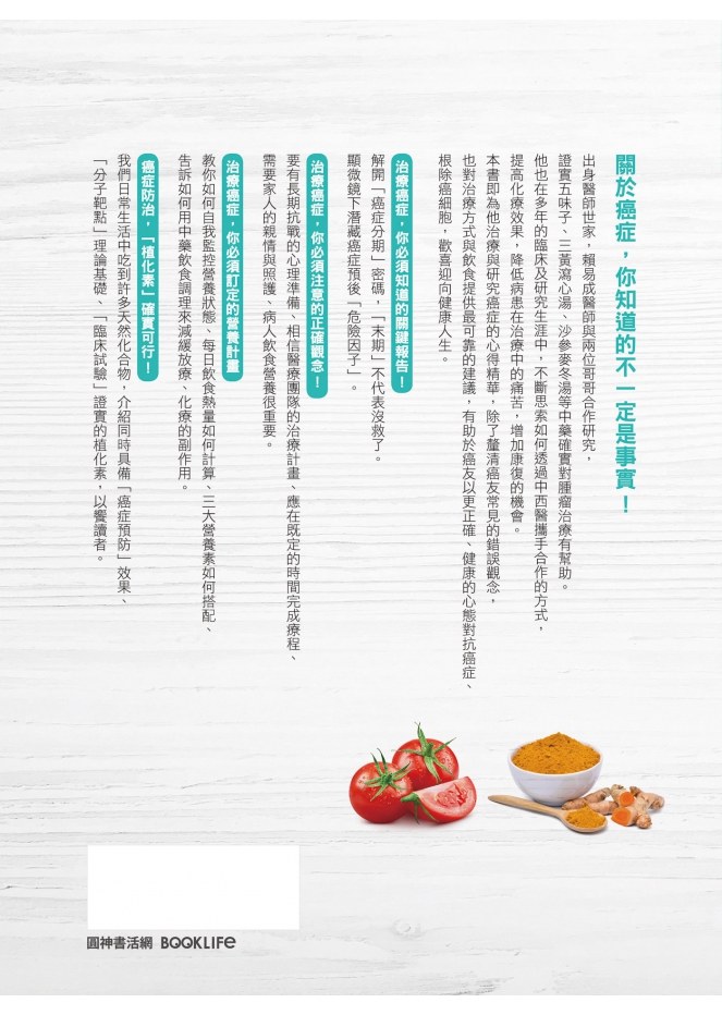 本書即為他治療與研究癌症的心得精華,除了釐清癌友常見的錯誤觀念,也對治療方式與飲食提供最可靠的建議,有助於癌友以更正確、健康的心態對抗癌症、根除癌細胞,歡喜迎向健康人生。