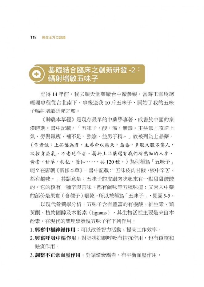 基礎結合臨床之創新研發-2:輻射增敏五味子