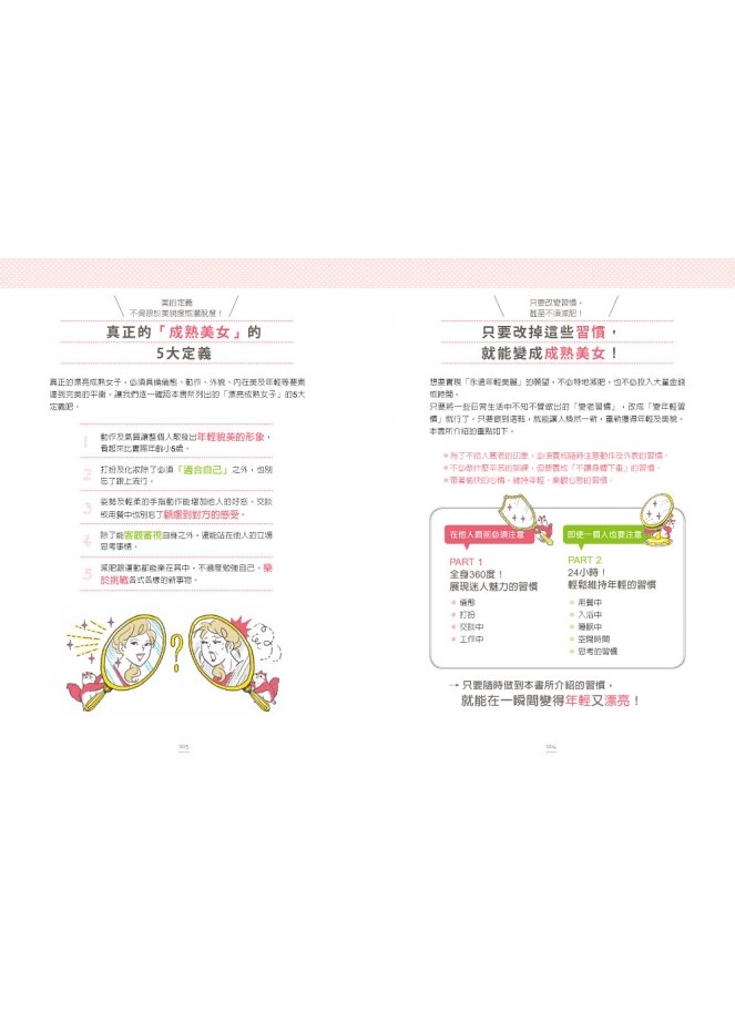 生活習慣決定妳的外貌年齡!不論是在人前(動作、穿著、對話、用餐),還是人後(用餐、入浴、睡眠、心態),只要注意這些小細節,就能把「顯老的習慣」變成「逆齡美女的習慣」,改變妳在他人眼中的印象!