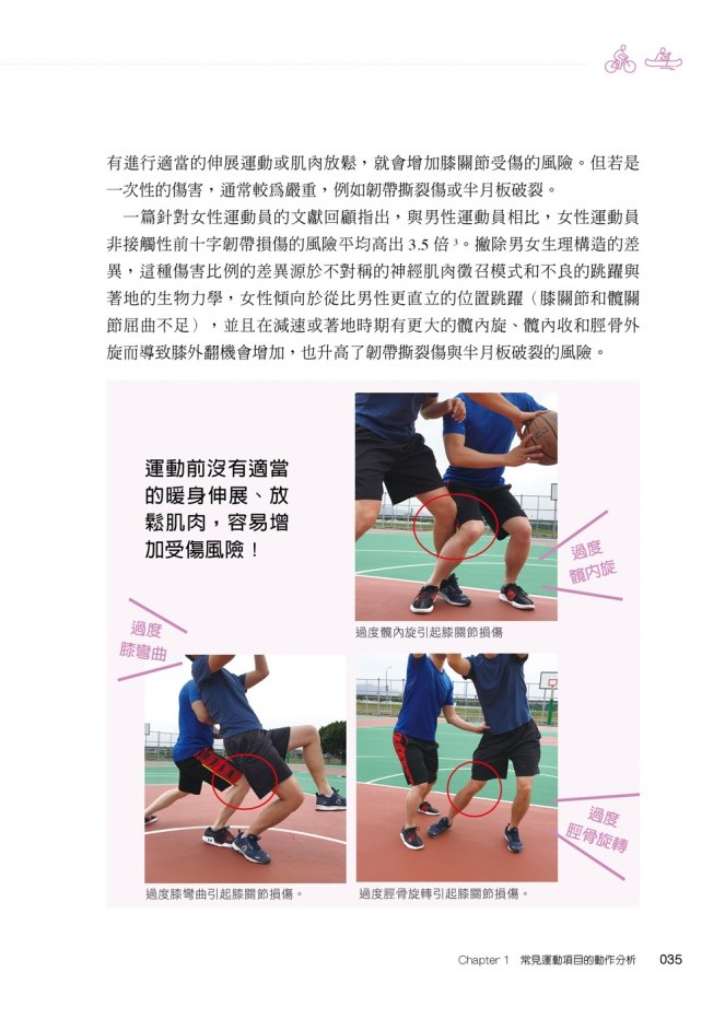 這本運動肌內效貼紮書從Chapter 1的運動單項開始說明,舉凡重訓、自行車、路跑、籃球、羽球、游泳,無一不是目前最熱門最常見的運動項目,更重要的是本書四位作者,都是臨床經驗非常豐富的物理治療師,他們為讀者整理了動作的概念以及常見的傷害種類、原因和可以預防處理的方法,甚至統整了專業研究文獻結果附在書本的最後,讓有興趣希望更加詳細了解的人可以去搜尋閱讀,可見作者們真的非常用心。