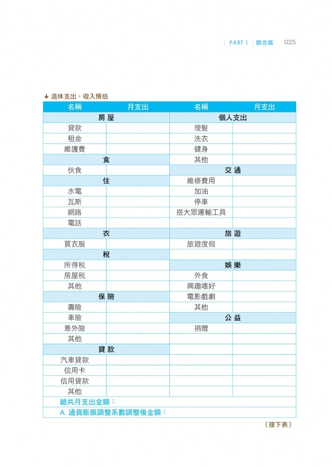 以往我雖然也在媒體專欄寫不少退休相關文章,不過跟專欄上的文章比起,本書看起來更加有系統也更深入,讓你完整了解退休相關的各個面向。也感謝高震宇先生幫忙寫有關公教年金改革等部分章節。我們盡量提供客觀、實用的資訊,希望對你的退休規畫有幫助。焦慮或逃避都不是面臨退休該做的事,透過事先的準備學習、做好完善周全的退休規畫,便能更有自信的迎接人生的另一個階段,讓退休生活過得更充實自在!