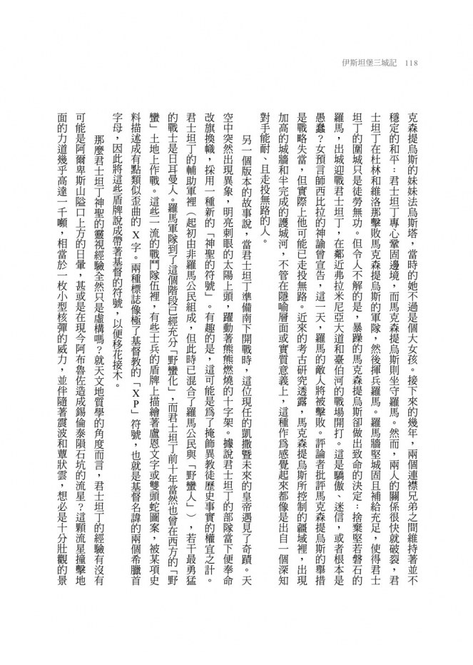 位於這座現代大都會周圍、那些偶然倖存的歷史遺蹟仍留存至今,例如商店街的古老圓柱基座、清真寺旁的水泉(古代異教徒的神壇變成基督徒教堂,再變成穆斯林聖殿),彷彿是驗證這座城市組成族群駁雜多元的試金石。伊斯坦堡往往超脫時間之外,因此也被稱為新羅馬、新耶路撒冷、真主的永恆之城。八千多年來,超過三百二十代人在此居住、工作和遊憩。其間留下一些令人挫折的空白,但也提供了考古學與文獻證據的寶貴發現;其中有許多才剛出土,或是不久前才從檔案資料中浮現。這正是本書開頭的重點。伊斯坦堡的歷史中曾出現大量譁眾取寵的人物,但除了聚焦於權貴顯要,我也設法探索那些可能不知道自己正在創造歷史的人。從詞源學、哲學和懷抱夢想的角度而言,「城市」即是生活於其中的「人」。因此在本書中,讀者會見識到形形色色的男女、窮人和富人、強者與弱者。