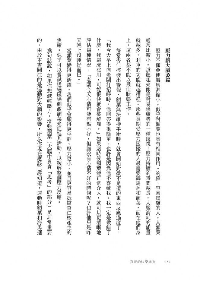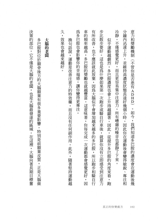 ・如果我可以決定的話,全世界每個18歲左右的人都應該讀這本書。它以易於理解的語言解釋大腦的運作原理,以及我們如何受益於運動。我決定遵循漢森醫師所寫的內容,改變生活的方式!──美國讀者
