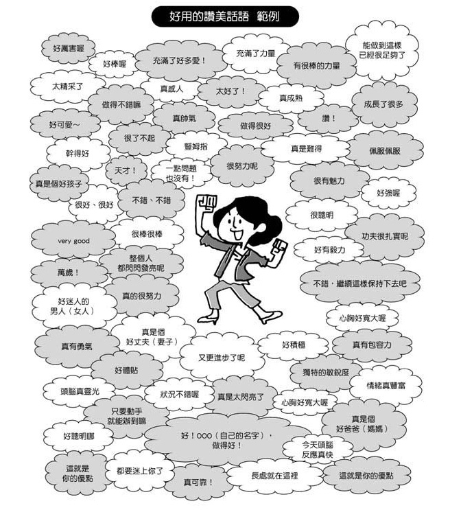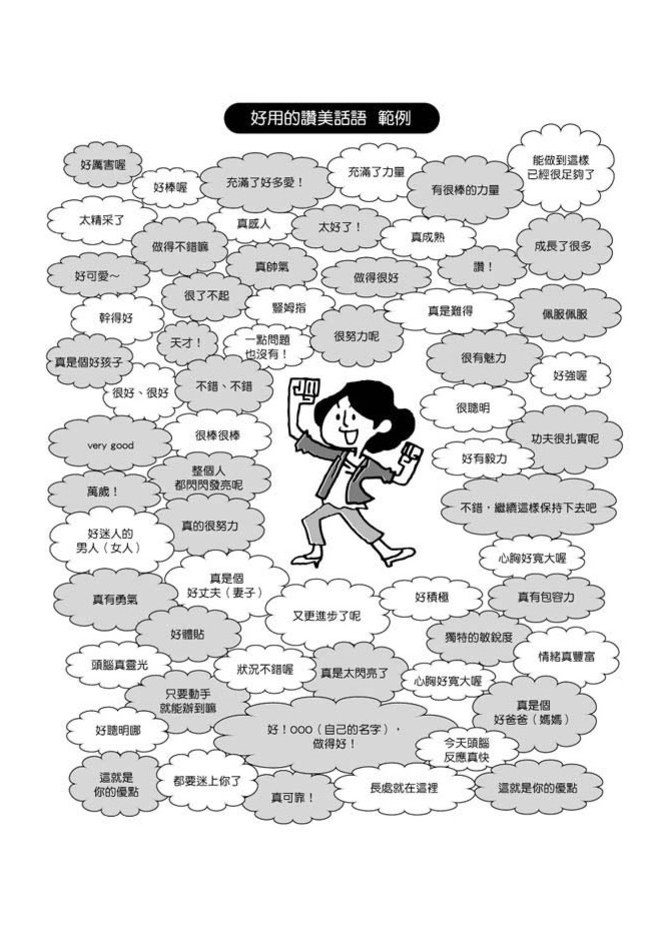 作者歸納多年助人心得,自行研發出「讚美日記」,融入她所教授的啟發課程中;