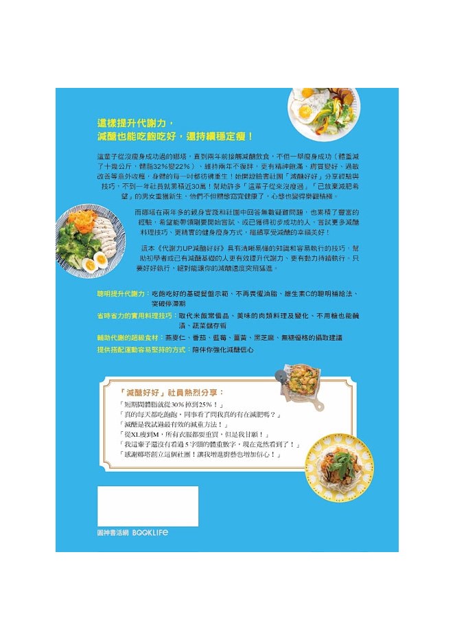 這本《代謝力UP減醣好好》具有清晰易懂的知識和容易執行的技巧,幫助初學者或已有減醣基礎的人更有效提升代謝力、更有動力持續執行。只要好好執行,絕對能讓你的減醣速度突飛猛進。