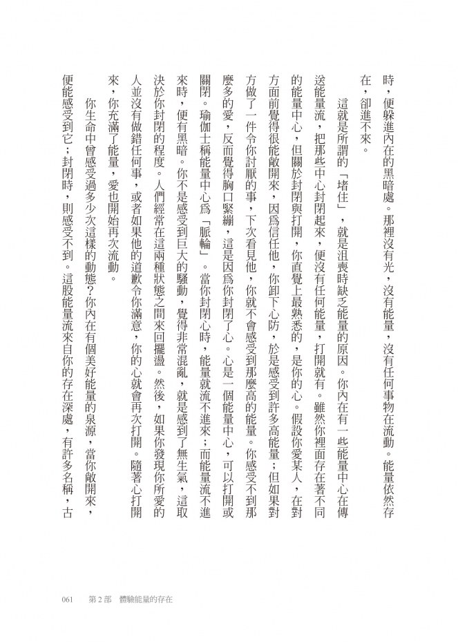 和內在的能量連結,就只是一個簡單的意願,「告訴自己別封閉,永遠保持開放。」就像水龍頭開關,你打開,能量就流進來;你關上,就鎖住能量。真的,就這麼簡單。控制開關的人,其實是你自己。只要你願意放鬆與開放,巨大的能量就會在你的內在湧現。